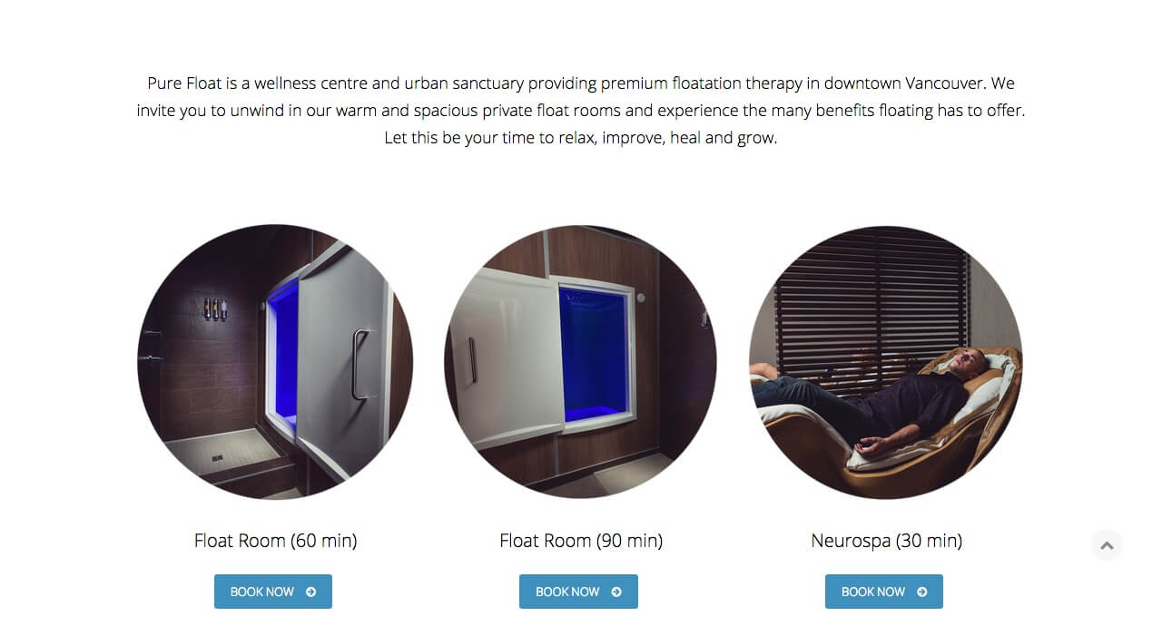 Pure Float is a centre for wellness located in scenic downtown Vancouver. Pure Float it is a new trend in wellness and relaxation. The clients wants to create a modern and minimal website layout to showcase his services and facilities. Also we create a section with wellness offers and booking engine.